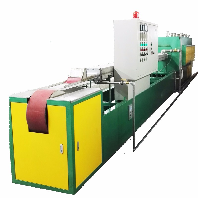 該裝置主要由傳動(dòng)系統(tǒng)、加熱系統(tǒng)、冷卻系統(tǒng)、控制系統(tǒng)、氨分解供氣系統(tǒng)組成。馬弗爐采用進(jìn)口耐高溫鎳合金壓焊而成;可拆裝的電熱元件可上下加熱;鋼帶輸送無(wú)級(jí)調(diào)速;液氨分解得到的氣體混合物(氫75%、氧25%)進(jìn)入爐缸,達(dá)到氣體保護(hù)效果;氣體方向調(diào)節(jié)裝置,保證大氣穩(wěn)定。經(jīng)過(guò)這種爐處理后,產(chǎn)品表面會(huì)變得光亮,不會(huì)被氧化。所有經(jīng)過(guò)處理的產(chǎn)品將達(dá)到良好的一致性。